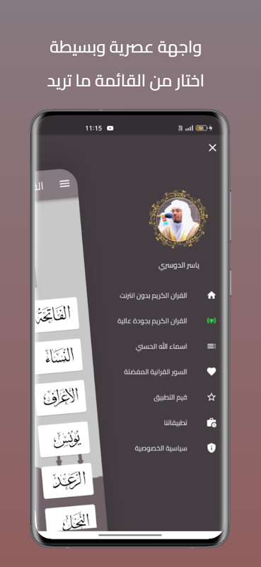 ⭐ Definición de la aplicación Yasser Al-Dossary, todo el Corán sin la red ⭐