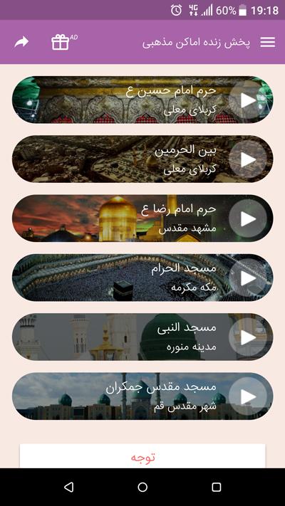 پخش زنده حرم امام حسین (ع) ، بین الحرمین ، پخش زنده کربلا و سایر مکان های مذهبی (مکه، مدینه، مشهد، مسجد جمکران) با کیفیت و سرعت بالا