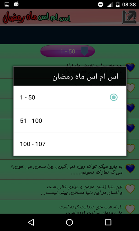 SMS Ramadán Android aplicación en Persa