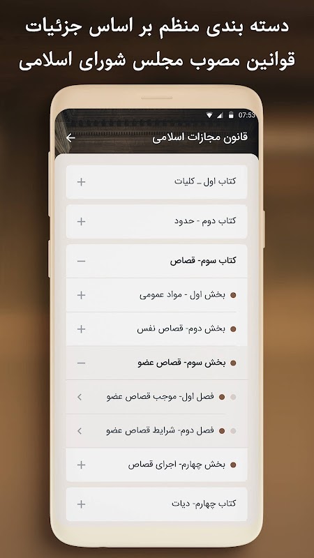 برنامه کتاب قوانین کیفری و مجازات اسلامی برای قبولی در آزمون وکالت برای شما کاربران عزیز ارائه شده است تا به مرجع کامل قانون جزا و مجازات های کیفری و حقوقی دسترسی داشته باشید.