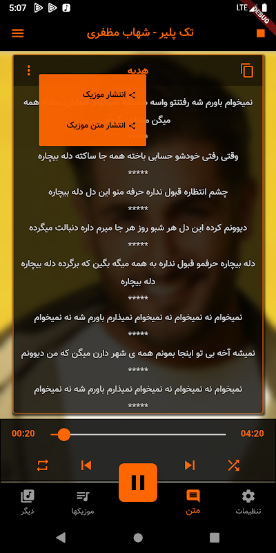 Acerca del گلچین شهاب مظفری بدون اینترنت بهمراه متن - تکپلیر