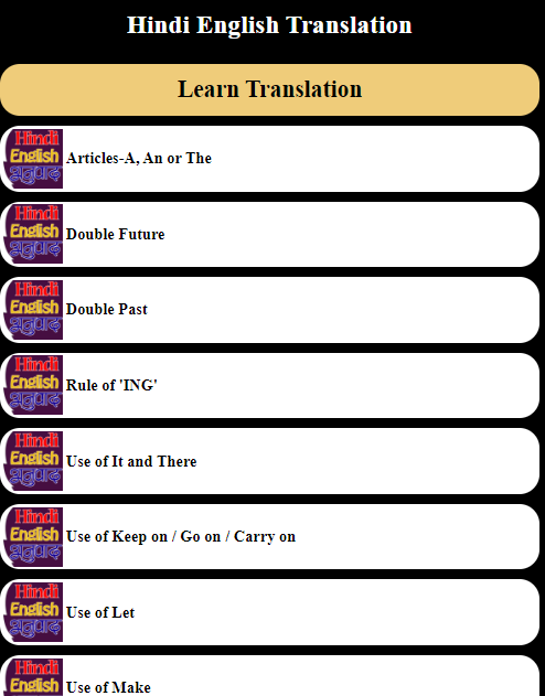 ¡Puede obtener la traducción de cada oración en inglés y palabra en inglés en hindi! En esta aplicación