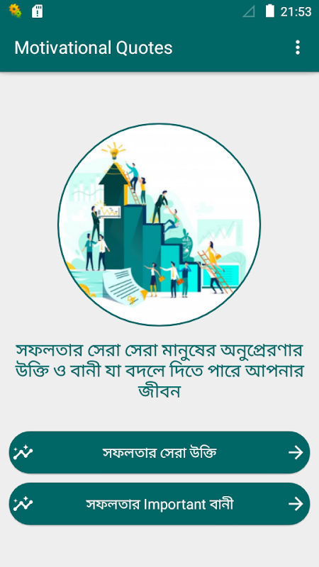 Citas de motivación - Citas de motivación Las palabras y dichos inspiradores más conocidos ganaron la batalla de la vida. Consejos motivacionales Desde esta aplicación puedes leer citas de personas que han encontrado muchos obstáculos en su camino pero los han superado todos. Frases de motivación en bengalí (Frases de motivación en bengalí) Pero lo más importante es que nunca dejaron de caminar, Abiram siguió caminando y lo lograron.