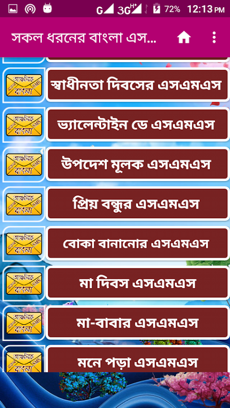 ইত্যাদি ইত্যাদি আরো এই অ্যাপের মধ্যে নতুন নতুন এসএমএস পাবেন সকল ধরনের sms এই অ্যাপে দেয়া আছে ।