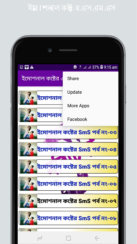 আরও কিছু অ্যাপ..আমাদের আছে যা থেকে সুন্দর সুন্দ এস এমএস পেতে পারেন মন খারাপ Sms এমনকি ভালবাসার চিঠি বিরহের SmS নিজের ভালবাসা মেসেজ কষ্টের কথা। ও প্রেমের এসএমএস SMS বাংলা এস এম এস এবং বাংলা কষ্টের এসএমএস দিতে পারেন।।