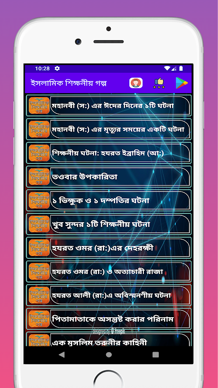 ইসলামিক শিক্ষণীয় গল্প -Islamic Shikkhoniyo Golpo একটি শিক্ষামূলক ইসলামিক বাংলা অ্যাপ যা নবীর জীবনী nobijir jiboni ও জীবন কাহিনী থেকে নেয়া বিভিন্ন গল্প, সাহাবীদের গল্প, হাদিসের গল্প, শিক্ষনীয় গল্প, ইসলামিক গল্প ইত্যাদি দিয়ে সাজানো হয়েছে। নবীদের জীবনী/নবী রাসুলদের কাহিনী, মহানবীর জীবনী (হযরত মুহাম্মদ সাঃ এর জীবনী), সাহাবীদের জীবনী আমাদের জন্য অফুরন্ত শিক্ষার উৎস যা থেকে প্রাপ্ত শিক্ষা আমরা আমাদের জীবনে কাজে লাগাতে পারি। ইসলামিক বই ও ইন্টারনেট থেকে বিভিন্ন ইসলামের ইতিহাস, ইসলামিক গল্প ও কাহিনী সমূহ এবং এ থেকে শিক্ষনীয় গল্প নিয়ে বানানো হয়েছে এই ফ্রি বাংলা অ্যাপ টি যা ইসলামিক গল্পের বই এর মত খুব সহজেই পড়তে ও জানতে পারবেন।