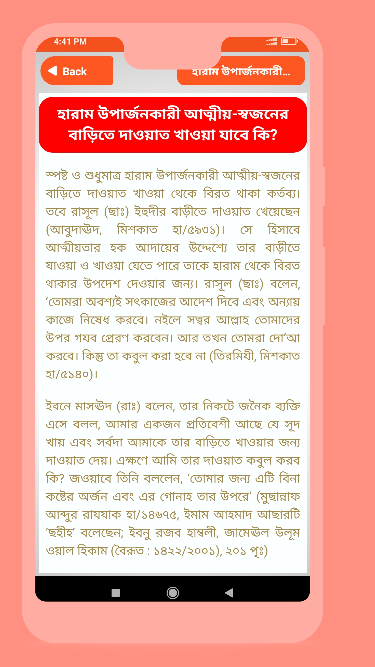 Aplicación islámica de preguntas y respuestas টিতে পাবেন ২৫০+ গুরুত্বপূর্ণ প্রশ্ন। এইসকল প্রশ্ন বা সমস্যা গুলো কোরআন হাদিসের আলোকে সমাধান দেওয়ার চেষ্টা করা হয়েছে। এই সমস্যা গুলো আমাদের জীবনে চলার পথে হরহামেশাই আমাদের সামনে চলে আসে। তাই এগুলোর সমাধান বা উত্তর আমাদের তথা প্রতিটি মুসলমানের জন্য অত্যন্ত জরুরি। কেননা যদি এই ইসলামিক মাসলা মাসায়েল গুলো জানা না থাকে তাহলে অনেক ভুল ভ্রান্তি হবার সম্ভাবনা থেকে যায়। প্রতিটি মাসলা মাসায়েল এর সাথে নির্ভরযোগ্য সুত্রের উল্লেখ করা হয়েছে।