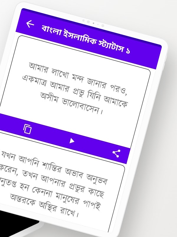 Esta aplicación será muy útil para aquellos que buscaban el estado islámico bengalí. Traemos para ti una nueva selección de todas las citas islámicas. A través de esta aplicación, puede leer SMS en bengalí, SMS islámicos en bengalí y estado islámico, estado islámico y publicaciones islámicas en bengalí, así como ver el horario de oración. Horarios de oración. Se dan citas seleccionadas de la biografía del Profeta (PBUH), Al-Qur'an y Al-Hadith y libros islámicos. Que será inspiración en tu vida. Espero que te resulte útil decorarte islámicamente.