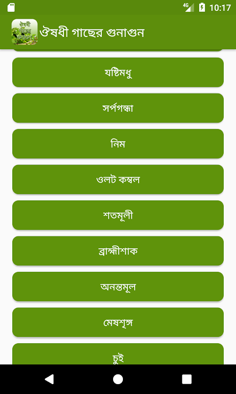 ঔষধি গাছের গুনাগুন, ঔষধি গাছের নানা উপকারিতা, কোন ঔষধি গাছের কি কি গুনাগুন এবং বৈশিষ্ঠ্য তা নিয়েই মূলত আমাদের এই অ্যপলিকেশন্সটি । ঔষধি গাছের অনেক উপকারিত রয়েছে যা হয়ত আমরা অনেকেই জানি না । ঔষধি গাছে আমাদের নানা উপকার করে থাকে । নানা প্রকার রোগ ব্যাধির ভাল করার জন্য ঔষধি গাছের গুনাগুন অপরীসীম ।