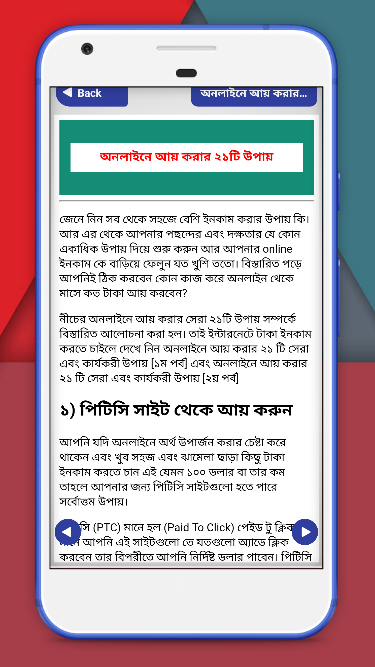 কম্পিউটার এ আয় করা সম্ভব এটি হয়তো আপনারা সকলেই জানেন। কিন্তু আপনাদের ভেতর অনেকের এটা জানা নেই যে কি কি উপায়ে অনলাইনে আয় করা সম্ভব। অনলাইনে আয় নিশ্চিত করতে কিছু নির্ভরযোগ্য উপায়, কিভাবে আপনিও অনলাইন থেকে প্রচুর পরিমানে আয় করতে পারবেন বিস্তারিত জেনে নিন। ইন্টারনেটে কাজ পেতে আপনাকে কোন টাকা পয়সা ব্যয় করতে হবেনা। এর জন্য চাই - ১) কম্পিউটার/ল্যাপটপ ২) ইন্টারনেট যুক্ত হবার যন্ত্র ৩) একটি স্মার্ট ফোন ৪) কাজ করার মানসিকতা এবং ৫) অসীম ধৈর্য ।কি কি উপায়ে অনলাইনে উপার্জন করা যেতে পারে সে সম্পর্কে একটা ধারনা দেয়ার জন্য অ্যাপটিতে অনেকগুলো উপায় নিয়ে আলোচনা করা হয়েছে।