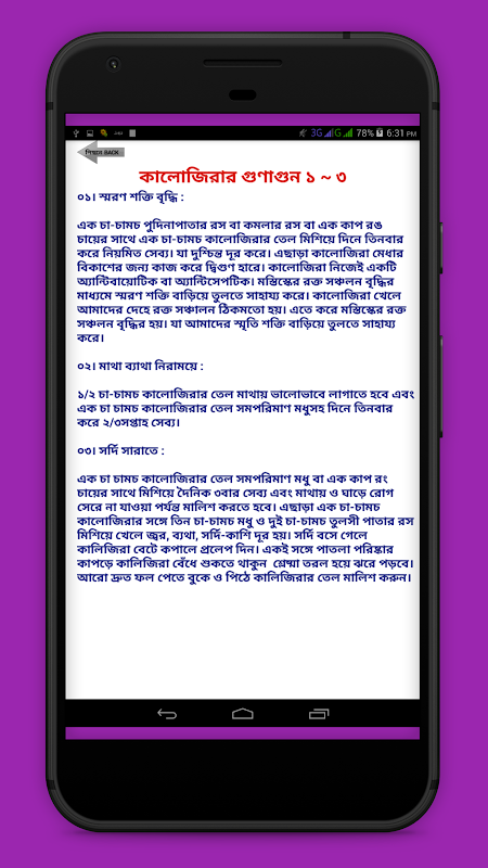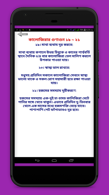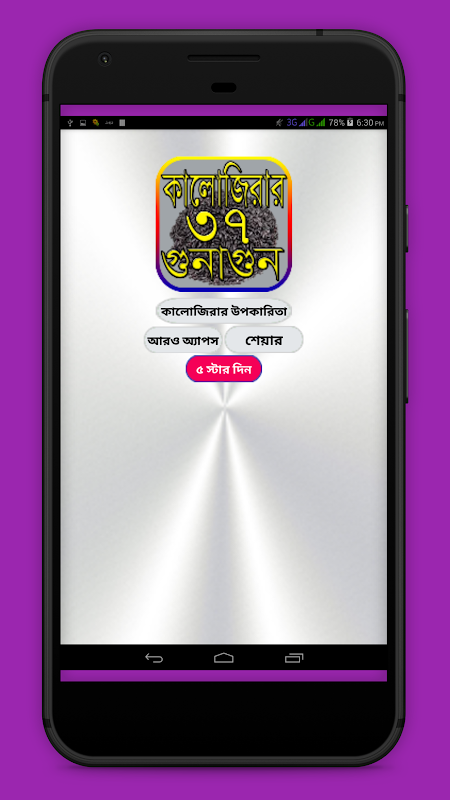 এই অ্যাপ এ রয়েছে কালোজিরা খাবার নিয়ম,কালোজিরা কিভাবে খেতে হয়, কালোজিরা খাওয়ার পদ্ধতি, কালোজিরার ব্যবহার, কালোজিরা খাওয়ার উপকারিতা ।