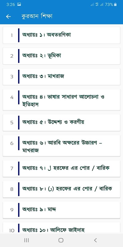Complete las aplicaciones de Al-Quran en letra árabe clara con pronunciación y significado de Tafsir y bengalí. Además, Ayatul Kursi (con audio), los últimos tres versos de Surah Hashr (con audio), Tawba y Esteghfar (con audio), Asmaul Husna (99 nombres de Alá), Doa Yunus, Esme Azam, etc. están todos en una sola aplicación. Hay opciones de marcadores, opciones para copiar y compartir, una hermosa interfaz de usuario, una aplicación necesaria para los usuarios bengalíes.