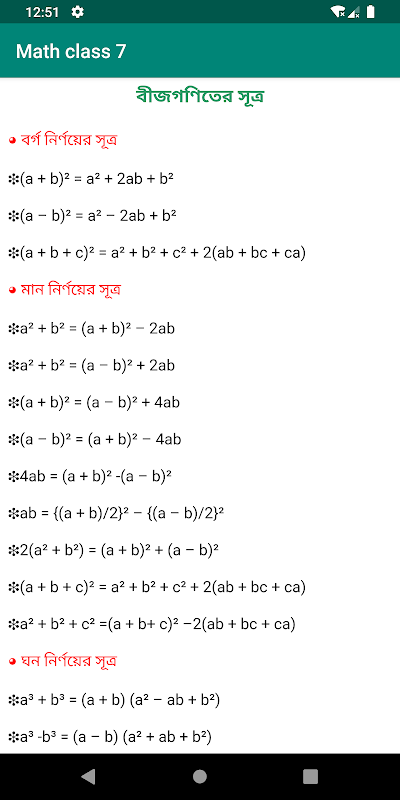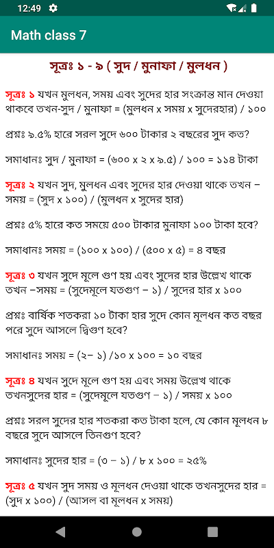 ক্লাস সেভেন গণিত সমাধান এবং গণিতের সকল সূত্র
