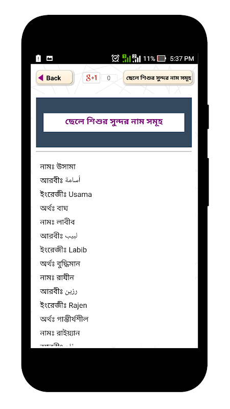 Muslim baby name have some beautiful meaning which you will get from our application. You will also get arabic name. Muslim baby name bangla also available. So, you will know muslim baby names and meanings. Muslim baby names and meaning bangla is very easy to understand for bengali people. I hope you like our bangla muslim baby names application.
