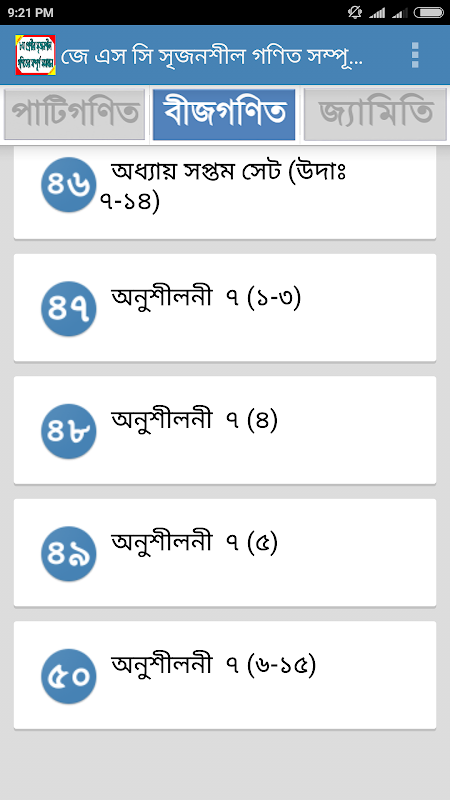 অষ্টম শ্রেনির সৃজনশীল গনিত সম্পূর্ণ সমাধান, জেএসসি পাটিগনিত, বীজগনিত ও জ্যামিতি সকল প্রশ্নের সমাধান নিয়ে আমাদের এই অ্যাপ।