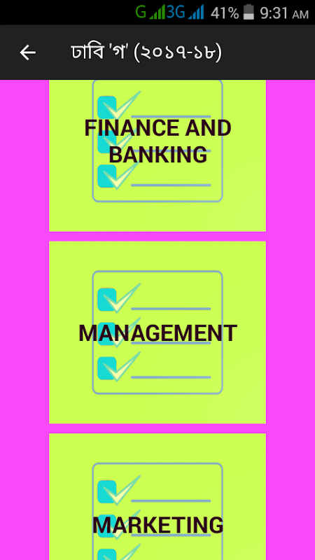 এই অ্যাপটি একটি মডেল টেস্ট অ্যাপ। ঢাকা ইউনিভার্সিটির 'গ' ইউনিটের ভর্তি পরীক্ষার বিগত সালের প্রশ্নগুলোর মডেল টেস্ট খুব সহজে যে কেও দিতে পারবে। প্রতিটা বিষয়ের আলাদা আলাদা ভাবে ২০/২৫ নম্বর এর টেস্ট দেওয়া যাবে। আপনি কোন বিষয়ে কত নম্বর পাচ্ছেন তা দ্বারা আপনার প্রস্তুতি খুব সহজে যাচাই করতে পারবেন।