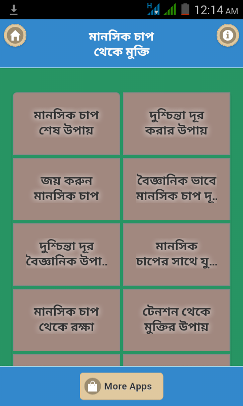 মানুষিক চাপ কিংবা দুশ্চিন্তা নাই এমন কোন মানুষ খুঁজেই পাওয়া যাবে না। মানসিক চাপ থেকে অনেকেই নানা রোগে আক্রান্ত হন। সঠিক উপায়ে বড় করে শ্বাস নিয়ে মানসিক চাপ কমানো যায়। মানসিক চাপ ব্যক্তিভেদে ভিন্ন কারণে হতে পারে। মানসিক চাপ একটু আধটু সবারই থাকে। মানসিক চাপ কমানোর সহজ উপায় হল, হাসুন, বন্ধুদের সঙ্গে আড্ডা দিন, মুভি দেখুন ইত্যাদি । আর আমাদের এই এপস জানতে পারবেন।