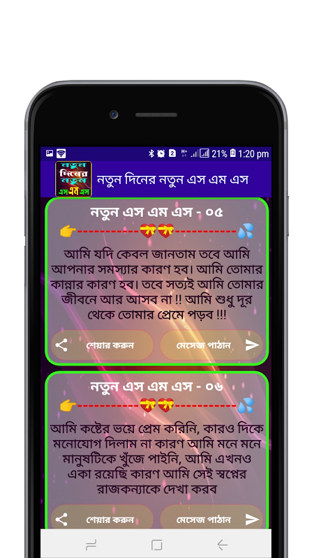 আ্যপটি ডাউনলোড করার জন্য ধন্যবাদ।সম্মানিত বন্ধুরা আমাদের নতুন দিনের নতুন এস এম এস এই অ্যাপটি যদি আপনাদের ভাল লেগে থাকে,তাহলে শেয়ার ও ৫স্টার রেটিং দিতে ভুলবেন না। আর এই আ্যপটি ভাল লাগলে আপনার বন্ধুদের সাথে শেয়ার করুন।(**********ধন্যবাদ সকলকে।**********)