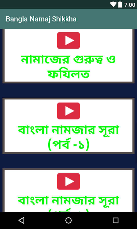 ইসলামে নামাজ শিক্ষার নিয়ম web site থেকে ইসলামে নামাজ শিক্ষার পদ্ধতি free download না করে অথবা ইসলামিক ভাবে নামাজ শিক্ষা online এ পরিপূর্ণ নামাজ শিক্ষা pdf না দেখে এই অ্যাপ্লিকেশানটি ডাউনলোড করলেই Bangla Namaz Shikkha সহিহ নামাজ শিক্ষা পদ্ধতি এর সকল ভিডিও একত্রে পেয়ে যাচ্ছেন।