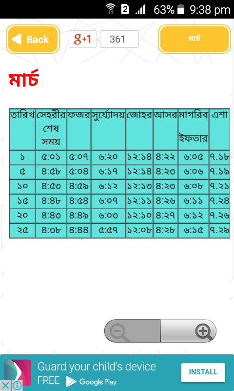 নামাজের সময়সূচি ও রোজার সময়সূচি চিরস্থায়ী 3.6