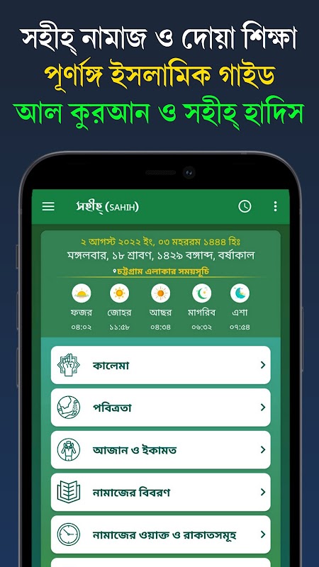Sahih Namaj Shikkha es una app completa para aprender Salat (Namaz) y el Corán. Contiene información islámica esencial con referencias auténticas a hadices y el Corán.