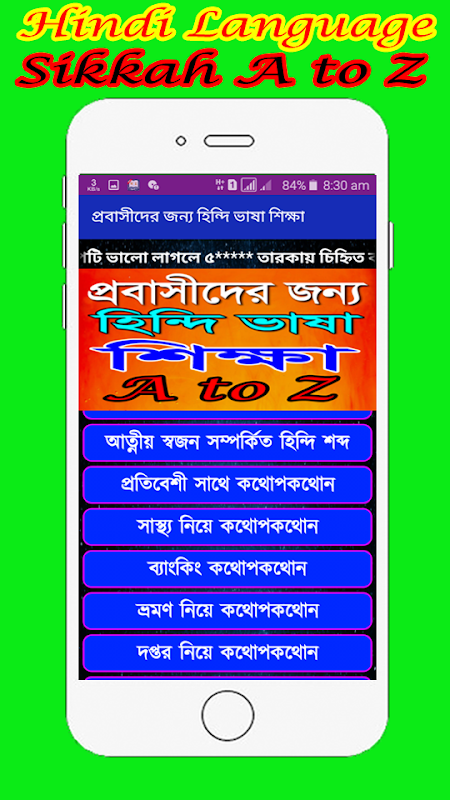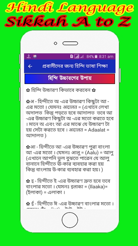 প্রবাসীদের হিন্দি ভাষা শিক্ষা দেওয়ার লক্ষ্যে নিয়ে আমাদের আজকের আয়োজন “হিন্দি ভাষা শিক্ষা “ অ্যাপটি। প্রবাসী আছেন যারা অনেকেই হিন্দি ভাষাভাষী বিভিন্ন দেশে বসবাস করেন তাদের জন্য হিন্দি ভাষা শিক্ষা নেওয়া খুবই জরুরি।