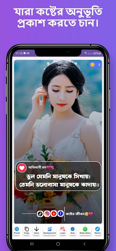 ✔️ কপি ও শেয়ার অপশন: যেকোনো স্ট্যাটাস সহজেই কপি করে শেয়ার করার সুবিধা।