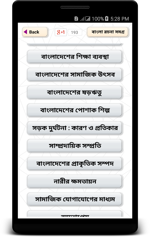 বাংলা রচনা সমগ্র ( Bangla Rochona somogro ) is an educational bangla apps. This is a bangla essay book for all students of school, collage and university. You will find a good type of essay collection in this application. This is a kind of bengali book and small contribution of bangla education.