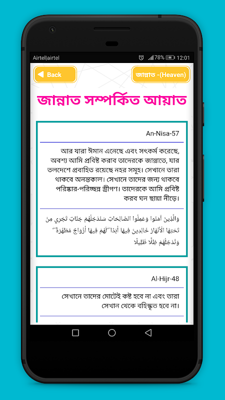 La aplicación se basa en el Corán, en la Sura del Corán es de diferentes categorías, basadas en el verso del Corán significado hayechebanladese el primer bengalí bengalí ninguna manera temática que estaba decorada, aunque el tema se basa en el Hadith Sharif. Se trata básicamente de una aplicación islámica que funcionará como la enseñanza del Corán y libros islámicos.