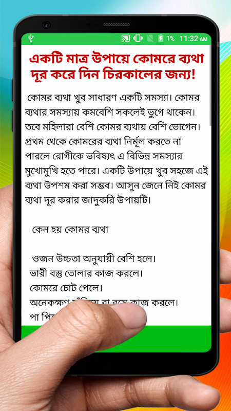 শরীরের ব্যাথা দূর করার এই অ্যাপটি থেকে যেসকল উপায় জানতে পারবেন; সেগুলো হচ্ছেঃ - মাথা ব্যাথা দূর করার উপায় , কান ব্যাথা , কোমরের ব্যথা , দাঁত ব্যথা , মাসিকের সময় পেটে ব্যথা , বাত জনিত হাঁটুর ব্যাথা , বাতের ব্যথা ,কর্মক্ষেত্রে পিঠের ব্যথা এই রোগ থেকে মুক্তি পেতে এই এপপ্সটি ডাউনলোড করে বিস্তারিত পড়ুন ।