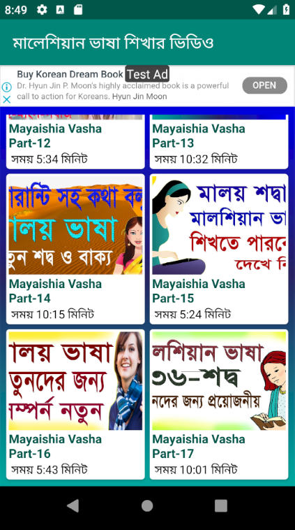 আর আমরা এই অ্যাপটির মধ্যে ইউটিউব থেকে বাছাইকরে মালয়েশিয়ান শিক্ষার ভিডিও একত্রিত করে অ্যাপটি তৈরী করেছি যাতে করে আপনি সহযেই অ্যাপটি চালূ করে মালয়েশিয়ান শেখার বিষয়গুলি পেয়ে যান।