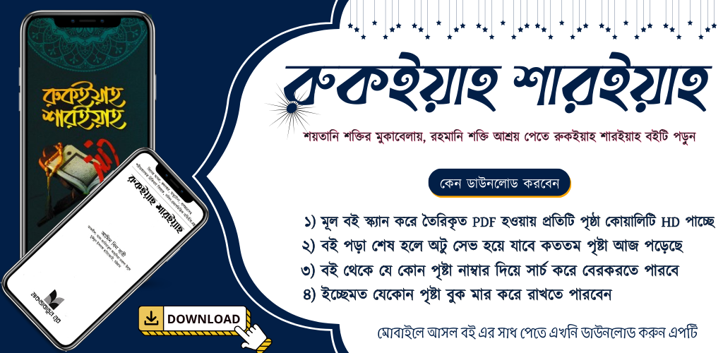 El tratamiento basado en la ruqyah normalmente no requiere recurrir a otros. Cualquiera puede tomar este tratamiento para sí mismo o para sus familiares. Pero para eso primero necesita saber cómo realizar Rukiyah y qué tipo de tratamiento tomar para cada tipo de problema. Y los libros básicos escritos en bengalí sobre este tema son totalmente inadecuados.