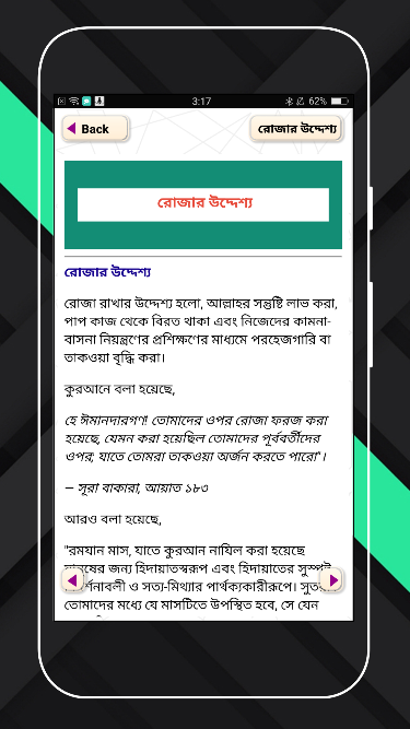 এই পবিত্র মাহে রমজানে বা রমজান ব্যতীত যত রোযা রয়েছে তাতে আপনাদের করণীয় ও বর্জনীয় গুলো কি তা দ্বারা এই অ্যাপটি তৈরি করা হয়েছে।এই অ্যাপ এর মাধ্যমে আপনারা রোজায় করণীয় ও বর্জনীয় সম্পর্কে জানতে পারবেন এবং বন্ধুদেরকে রোজার আমল সম্পর্কে জানাতে পারবেন।