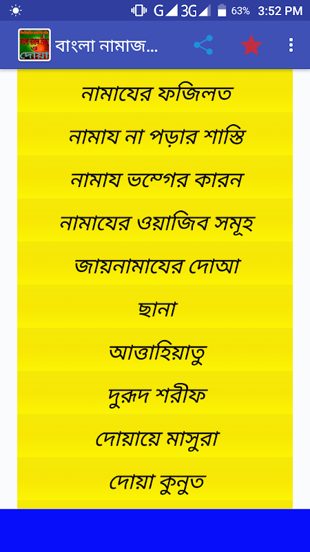 সঠিক ভাবে নামাজ পরার জন্য বাংলা নামাজ শিক্ষা (namaj - বাংলা নামাজ শিক্ষা)অ্যাপসটি ডাউনলোড করেনিন আজই।নামাজ সম্পর্কে গুরুত্বপূর্ন মাসয়ালা শিখুন এবং নামাজের ভুলক্রুটি থেকে মুক্ত থাকুন।
