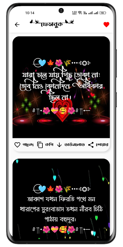 Bienvenido a Bangla Status & Caption, su destino único para encontrar las palabras perfectas para expresarse en las redes sociales, chats y más. Esta innovadora aplicación está diseñada para atender específicamente a la comunidad de habla bengalí y proporciona una amplia colección de actualizaciones de estado y subtítulos en bengalí.