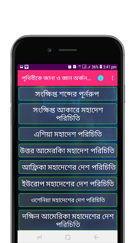 জানার কোনো বয়স নাই।জ্ঞান অর্জনের কোন শেষ নেই।তাই আজ আপনাদের জন্য নিয়ে আসলাম সবার জন্য সাধারন জ্ঞান সব বিষয় ২০২০। আমাদের অ্যাপে আপনি বাংলাদেশ ও আন্তর্জাতিক পর্যায়ে সকল ধরনের জ্ঞান অর্জন করতে পারবেন। তাছারা বি সিএস পরিক্ষার জন্য স্পেশাল ভাবে আলোচনা করা হয়েছে যা পাবেন আমাদের অ্যাপে। বাংলা,ইংলিশ,গনিত,মহাবিশ্ব,সম্পর্কে সাধারন জ্ঞান দেওয়া আছে।