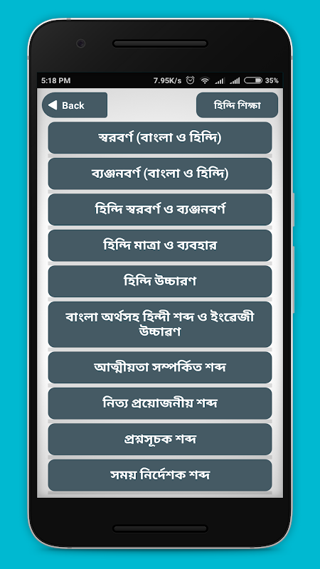 বাজারে বিভিন্ন রকম প্রচলিত হিন্দি ভাষা শিক্ষার বই বা hindi learning app through bengali আছে যেমন হিন্দি ভাষা শেখার সহজ কৌশল- Hindi Learning, মাত্র ৪৫ দিনে হিন্দি ভাষা শেখার সহজ কোর্স, hindi learning book free, দ্রুত হিন্দি ভাষা শিখুন ৭ দিনে or hindi vasa sikha, কার্যকারী হিন্দি ভাষা শিক্ষা - Learn Hindi,সহজে হিন্দি ভাষা শিখুন বাংলা/hindi vasa bangla, সহজে হিন্দি শিখুন Learn Hindi. Speak Hindi, হিন্দি শিখুন বাংলায় learning hindi through bengali ইত্যাদি। এসব hindi bhasha apps বা হিন্দি ভাষা শিক্ষা বই থেকে hindi bhasha হিন্দি ভাষা সম্পর্কে প্রাথমিক পর্যায়ে বেশ কার্যকারী ভুমিকা পালন করে থাকে। একাগ্রতা ও ইচ্ছাশক্তি থাকলে হিন্দিতে অনর্গল কথা বলা খুব কঠিন নয়। ইন্ডিয়ান ভিসা তথ্য ও ভারত ভ্রমন গাইড যাদের দরকার তারা সহজে কাজ চালানোর মত হিন্দি শেখার জন্য এই অ্যাপটির সাহায্য নিতে পারেন। এই অ্যাপ আপনাদের ভালভাবে হিন্দি hindi vasa শেখার জন্য শিক্ষকের মত সাহায্য করবে ও অল্প সময়ে কাজ চালানোর মত হিন্দীও শিখাবে। আশা করি আপনাদের ভাল লাগবে ও কাজে আসবে। ধন্যবাদ।