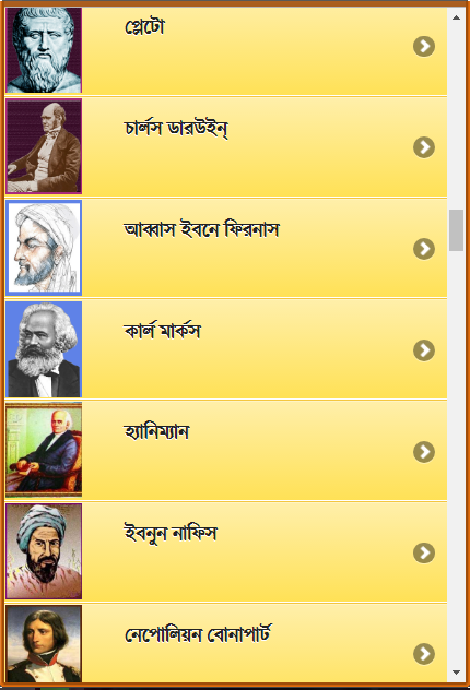 এই অ্যাপে যে মহান মনিষীদের জীবনী নিয়ে ডেভেলপ করা হয়েছে তারা হলেনঃ