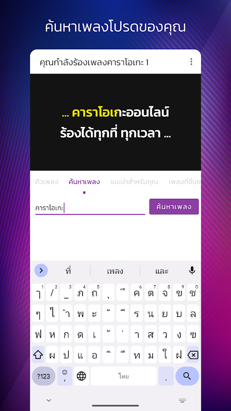 🎶 Karaoke Online Canta karaoke en el móvil, entretente con karaoke online, una app de canto que no te debes perder. ya sea cantando canciones tailandesas Karaoke de canciones tailandesas de varios géneros, como karaoke de canciones country karaoke de musica de cuerdas Canción de karaoke para la vida. Hay muchos para elegir. También puede cantar karaoke, grabar videos, karaoke, grabar sonido, karaoke de canciones tailandesas, grabar y cantar junto con música, karaoke, entretenimiento que está listo para que sea un cantante vocal en cualquier lugar. fácilmente en tu propio móvil