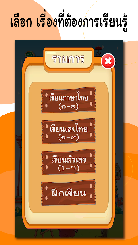 Es un programa educativo en tailandés para niños de jardín de infantes y niños pequeños que les ayuda a aprender a escribir correctamente y a escribir más rápido. Habrá 4 tipos de práctica de escritura: