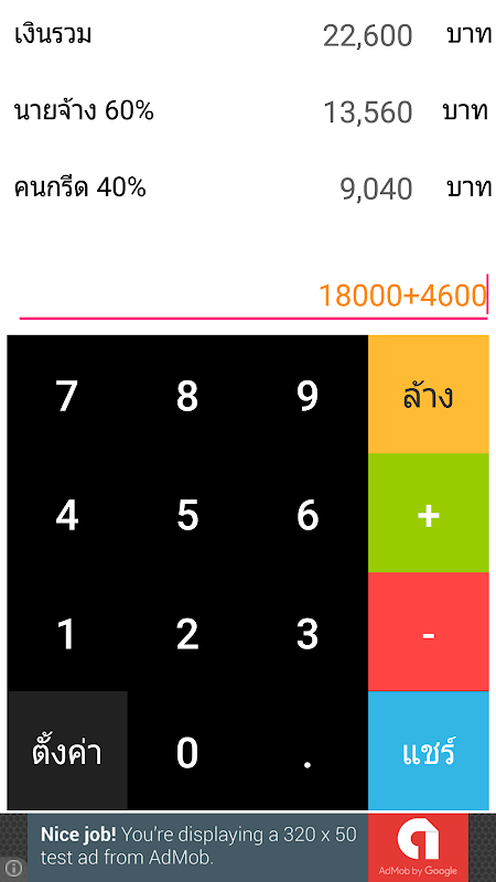 ใช้แทนเครื่องคิดเลขแบ่งเงินขายางพาราตามสัดส่วน 60/40 ไม่ต้องกดคำนวณหลายครั้ง