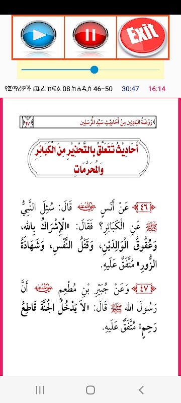 Una aplicación que enseña 122 Sahih Hadiths por Ustaz Khadr Ahmed Al Misee.