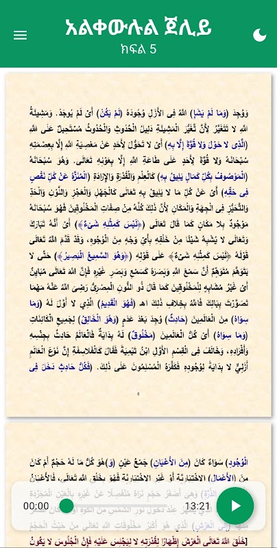 📖 El Libro Al-Qawl Al-Jaliyu es un texto religioso profundo, traducido y enseñado en amárico por el estimado Ustaz Habib Nuru. Esta aplicación ofrece fácil acceso al libro, dividido en secciones, junto con explicaciones en audio para una comprensión más profunda.