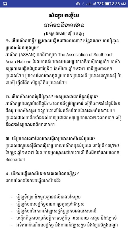 Improve you understanding of Khmer General Knowledge with this good Khmer app right from your Smartphone! You can learn and memorize all the Questions and Answers regarding general knowledge which is very important for you to be a good citizen or apply for a job or scholarship. If you enjoy using Khmer Song Quiz or Other Khmer Story book, you will love this app.