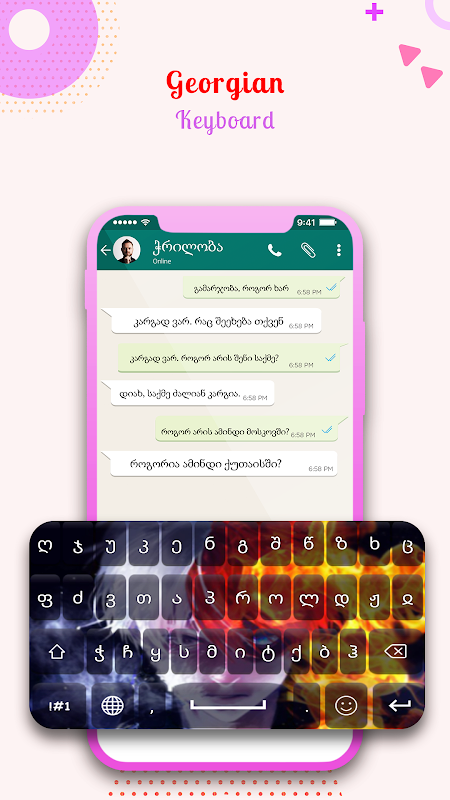 In this App, the user can easily compose emails in Georgian language, post on the social network in Georgian language & write messages through this keyboard. The user can use the app to write or type in Georgian text. This free keyboard apps is useful for Georgian people & Georgian speaking people across the world. In this keyboard user can write all Georgian Alphabets, Georgian letters & Georgian words very quickly & easily. This Keyboard helps the user to communicate with your world in your own language.