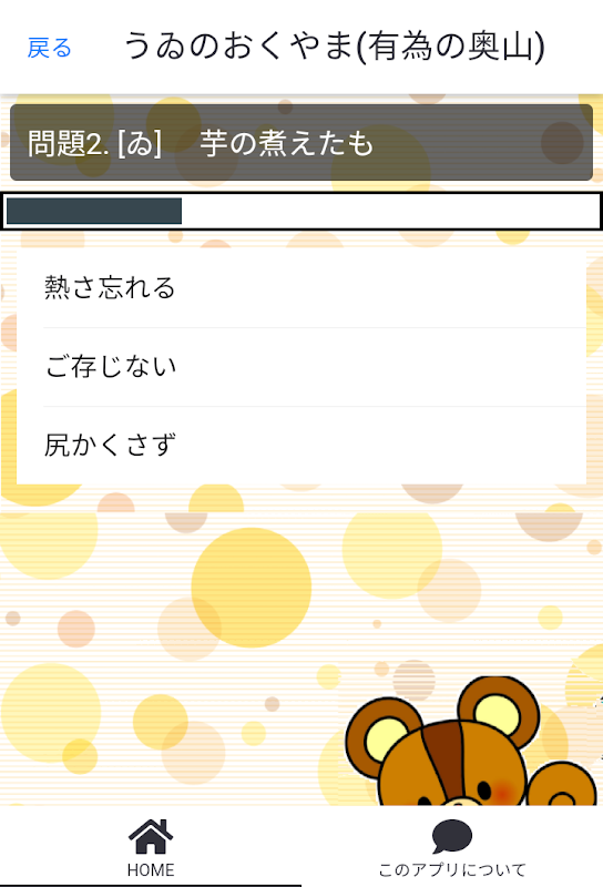 Se le pedirá la "primera mitad" de la frase "Iroha Uta", así que seleccione la frase correcta de la "segunda mitad" de las tres opciones.