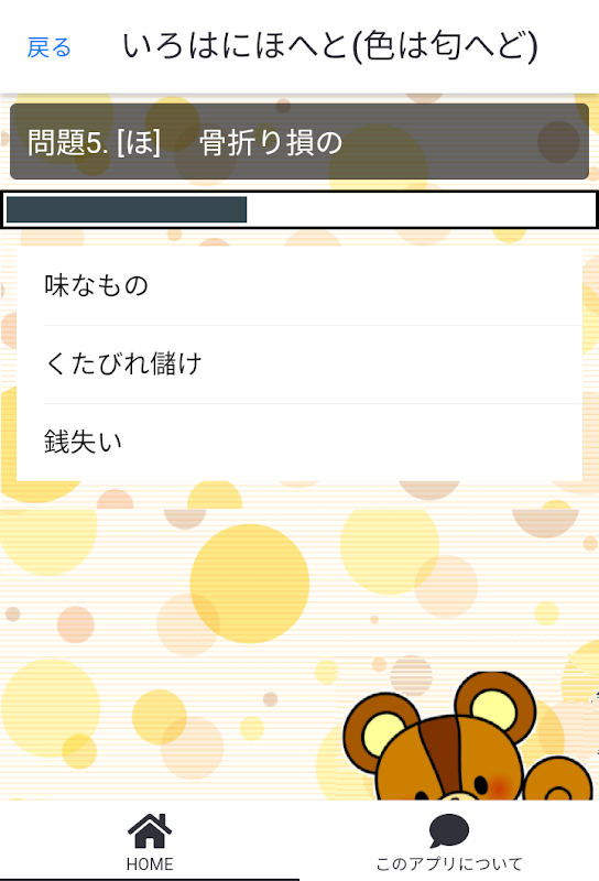 Es una aplicación de prueba que adivina la frase correcta de la "segunda mitad" correspondiente a la "primera mitad" de la frase de la "canción de Iroha".