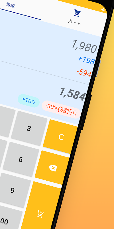 お買いもの電卓は、割引された金額をかんたんに計算できるお買いもの専用の電卓アプリです。