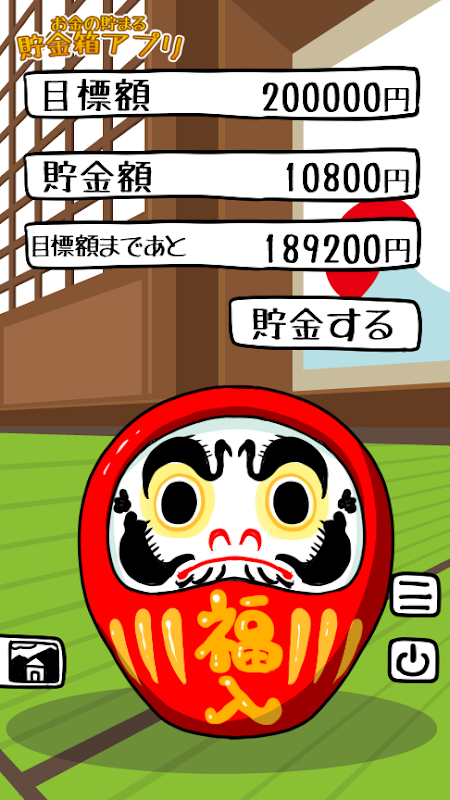 沢山の縁起の良いキャラクターを選択して貯金していくアプリです。