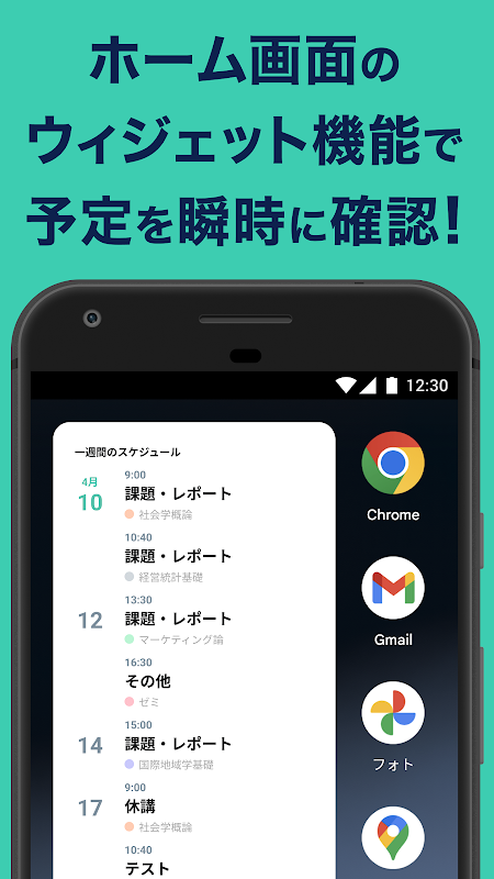 La aplicación de horarios número uno descargada para estudiantes universitarios. ¡Más de 5,2 millones de datos de clases! *2 Cree un horario muy fácilmente con un funcionamiento intuitivo. ¡También puedes gestionar la asistencia y las tareas!